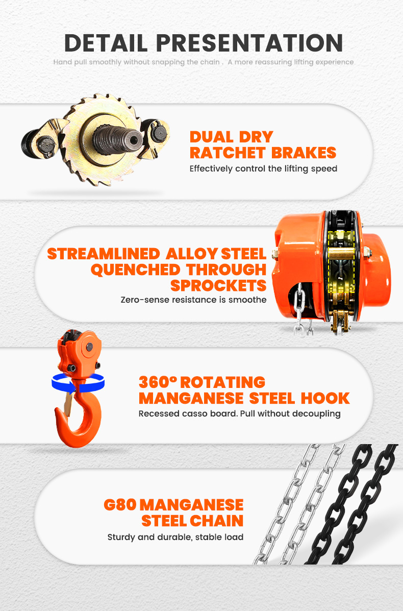 • Zinc plated hand chain as standard.